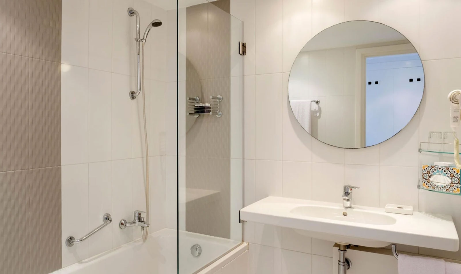 Alle Zimmer sind mit Badewanne und/oder Dusche, WC, Balkon oder Terrasse, Klimaanlage und/oder Heizung, Telefon, Fernseher, Safe, Haartrockner, Kosmetikspiegel und Mini-Kühlschrank.SafeWLANTVKlimaanlage
