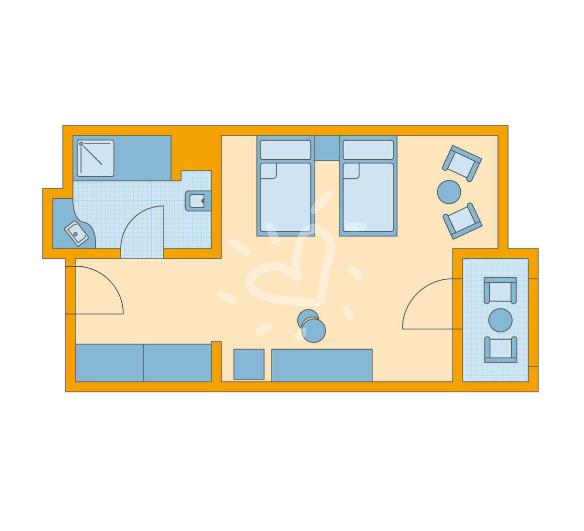 Details anzeigenNichtraucherzimmer, Gartenblick, ca. 23 m², letzte Renovierung 2022. Gesamtanzahl der Räume in diesem Zimmertyp: 1, Aufteilung wie folgt: 1 Schlafzimmer. 1 Doppelbett (2 Einzelbetten). Mindest-/Maximalbelegung: mind. 1 Erwachsener / max. 2 Erwachsene. Über die Maximalbelegung hinaus ist kein Kleinkind im Babybett möglich.