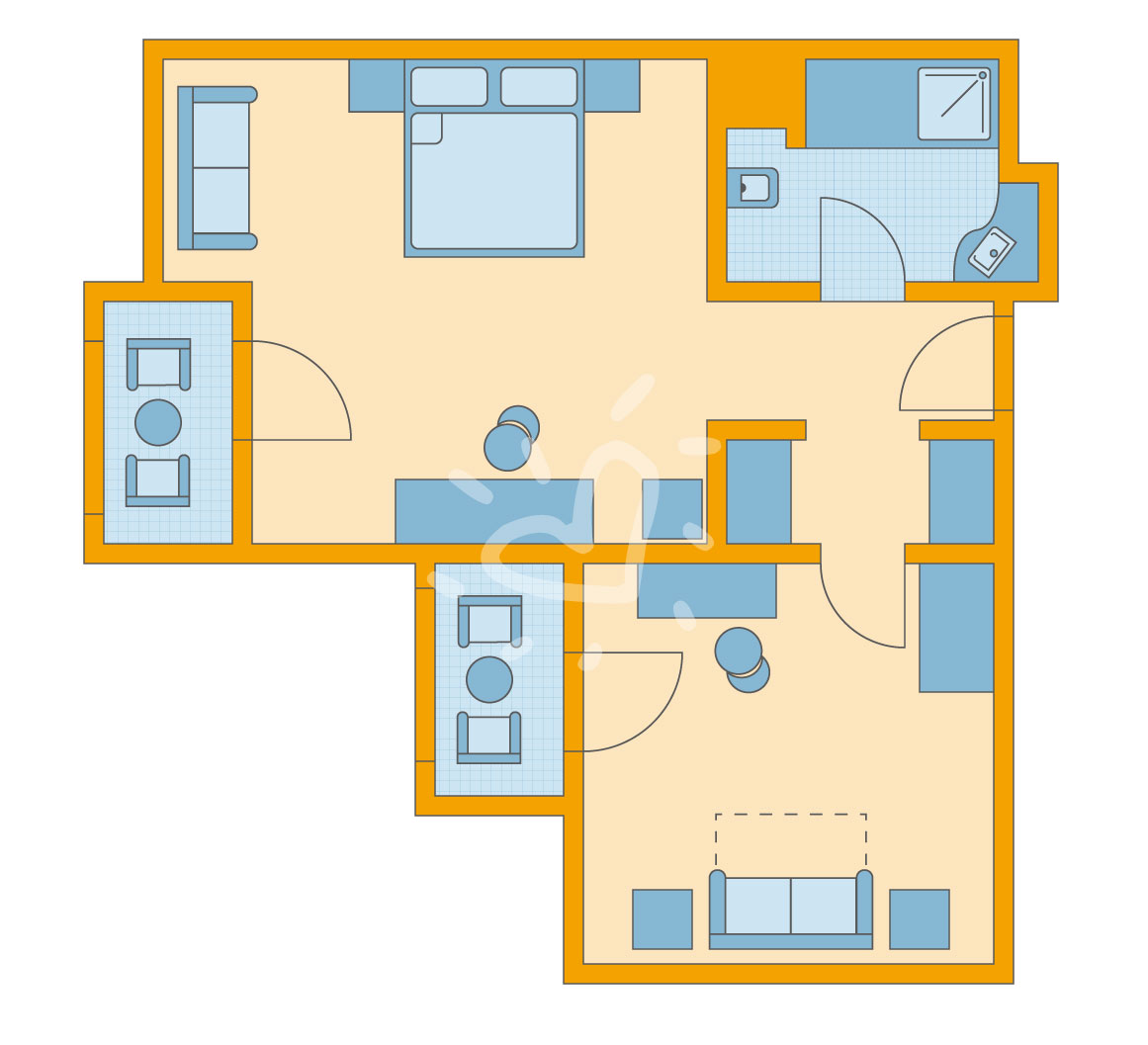 Details anzeigenNichtraucherzimmer, Gartenblick, ca. 45 m², letzte Renovierung 2022. Gesamtanzahl der Räume in diesem Zimmertyp: 2, Aufteilung wie folgt: kombiniertes Wohn-/Schlafzimmer, 1 Schlafzimmer. 1 Doppelbett, 1 Schlafsofa. Mindest-/Maximalbelegung: mind. 2 Erwachsener / max. 2 Erwachsene und 2 Kinder von 2-15 Jahre oder 3 Erwachsene und 1 Kind von 2-15 Jahre. Über die Maximalbelegung hinaus ist kein Kleinkind möglich.