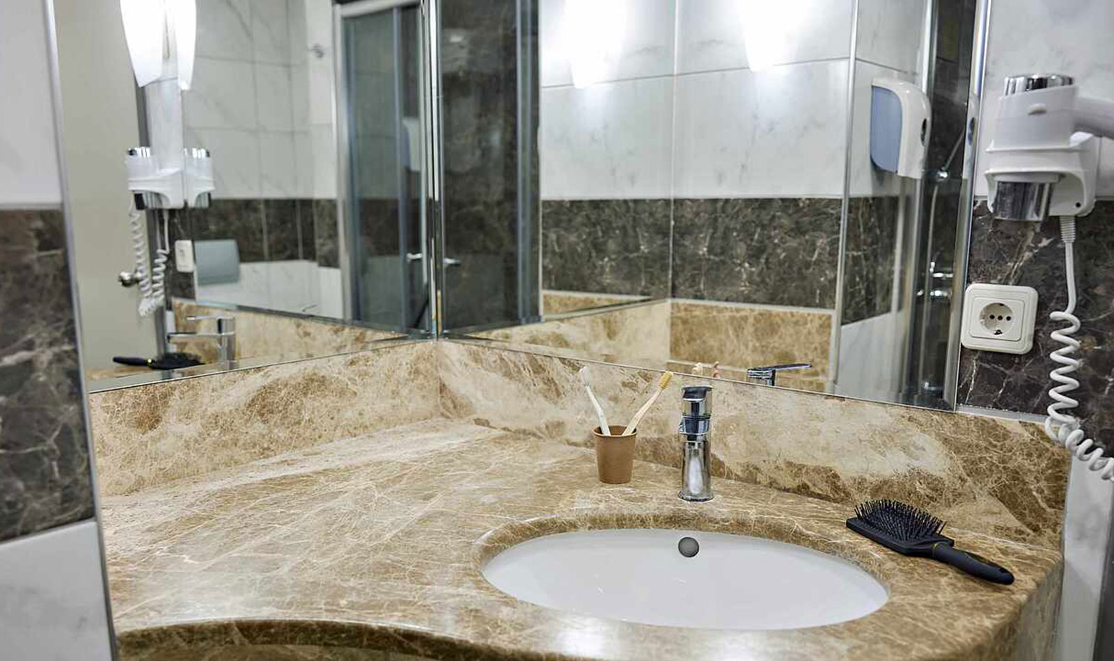 Klimaanlage: individuell regelbar, zentral gesteuert Fußboden: Fliesenboden Safe: ohne Gebühr Minibar: bei Ankunft mit Wasser und Softdrinks gefüllt (zusätzliches Wasser während des Aufenthaltes nach Bedarf) Telefon, Internet: WLAN/WiFi: ohne Gebühr, Fernseher: Flatscreen, deutsches Programm, Sat-TV Reinigungsservice: täglich Dusche, WC, Föhn Balkon oder Terrasse: mit SitzgelegenheitSafeWLANTVKlimaanlageBalkon -