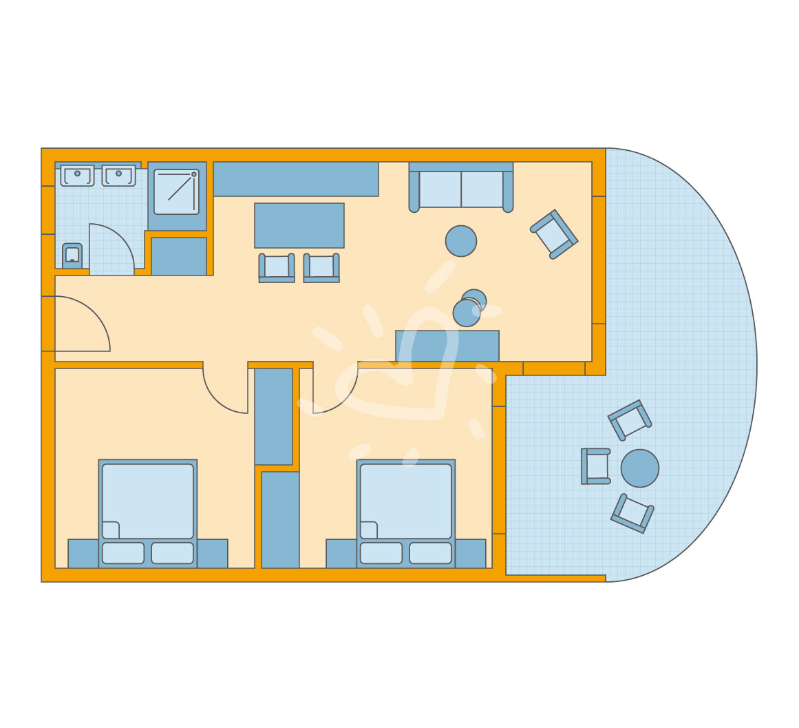 Details anzeigenNichtraucherzimmer, ca. 46 - 54 m², letzte Komplettrenovierung 2015. Gesamtzahl der Räume in diesem Zimmertyp: 3, Aufteilung wie folgt: kombiniertes Wohn-/Schlafzimmer und 2 Schlafzimmer. 2 Twinbeds (bestehend aus je 2 Einzelbetten à 90x190cm), 2 Schlafsofas (je 80x190cm), Babybett: ohne Gebühr. Mindest-/Maximalbelegung: mind. 2 Erwachsene / max. 4 Erwachsene und 2 Kindern zwischen 2 bis 21 Jahren. Die Unterbringung der 5. und 6. Person erfolgt auf einem Schlafsofa. Über die Maximalbelegung hinaus ist max. 1 Kleinkind unter 2 Jahren im Zimmer erlaubt.