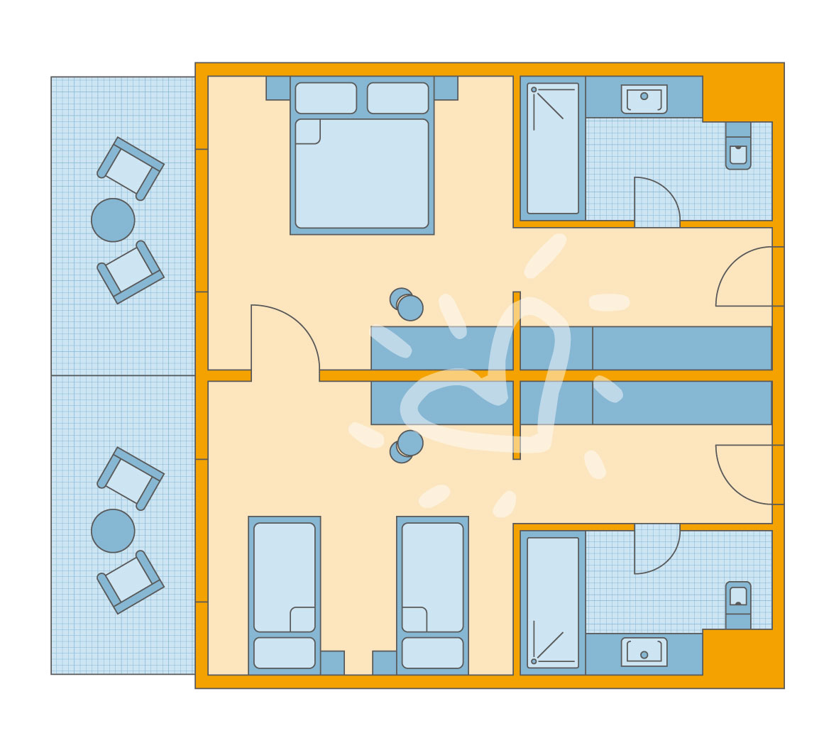 Details anzeigenNichtraucherzimmer, im Nebengebäude, ca. 64 m². Gesamtanzahl der Räume in diesem Zimmertyp: 2, Aufteilung wie folgt: bestehend aus 2 Doppelzimmern mit Verbindungstür. Queen-Size Betten oder Twinbetten. Babybett: ohne Gebühr. Mindest-/Maximalbelegung: mind. 4 Personen / max. 6 Personen. Über die Maximalbelegung hinaus ist 1 Kleinkind unter 2 Jahren im Zimmer erlaubt.