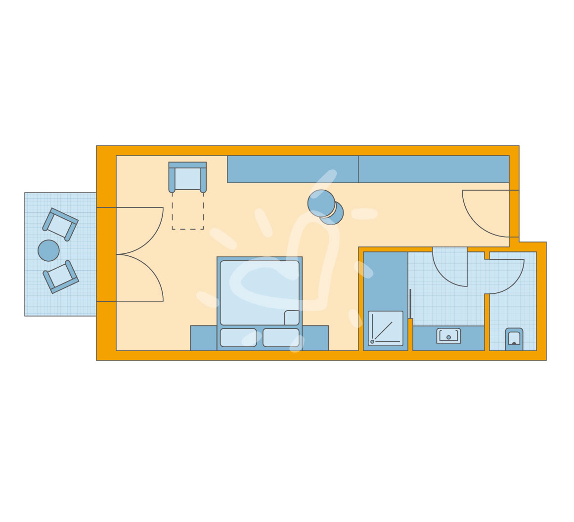 Heizung: individuell regelbar (saisonabhängig) Fußboden: Vinylboden Safe: ohne Gebühr Sofa Mini-Kühlschrank (begrenzte Kühlleistung; nicht gefüllt), Kaffeemaschine Telefon, Internet: WLAN/WiFi: ohne Gebühr, Fernseher: Flatscreen, deutsches Programm, Sat-TV, Radio Reinigungsservice: täglich Dusche, WC, Bademantel: ohne Gebühr, Föhn, Kosmetikspiegel Balkon oder Terrasse: mit Liegestühlen, mit SitzgelegenheitSafeWLANTVKlimaanlageBalkon -