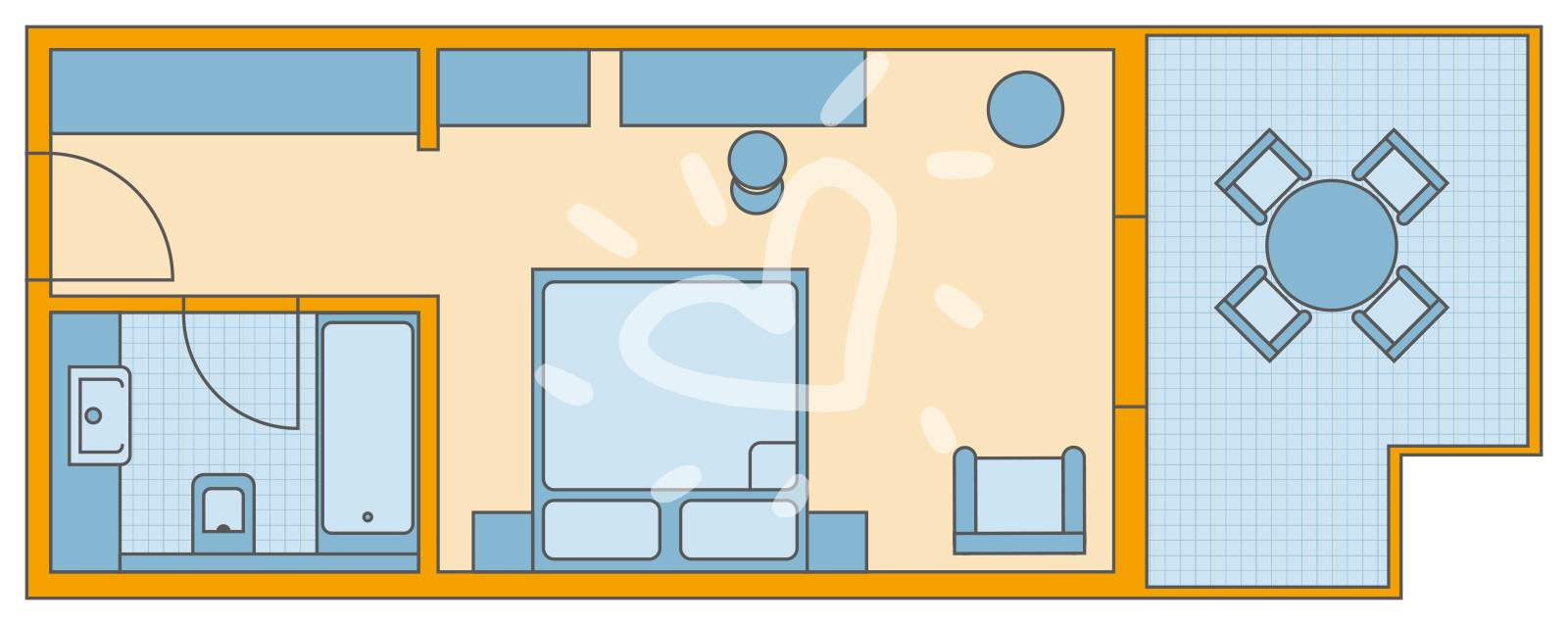 Klimaanlage: ohne Gebühr, individuell regelbar, Fußboden: Fliesenboden, Safe: ohne Gebühr, Minibar: Wasser: ohne Gebühr, Telefon, Internet: WLAN/WiFi: ohne Gebühr, Fernseher: Flatscreen, Sat-TV, Reinigungsservice: täglich, Dusche, WC, Föhn, Kosmetikspiegel, Terrasse: mit SitzgelegenheitSafeWLANTVKlimaanlage -