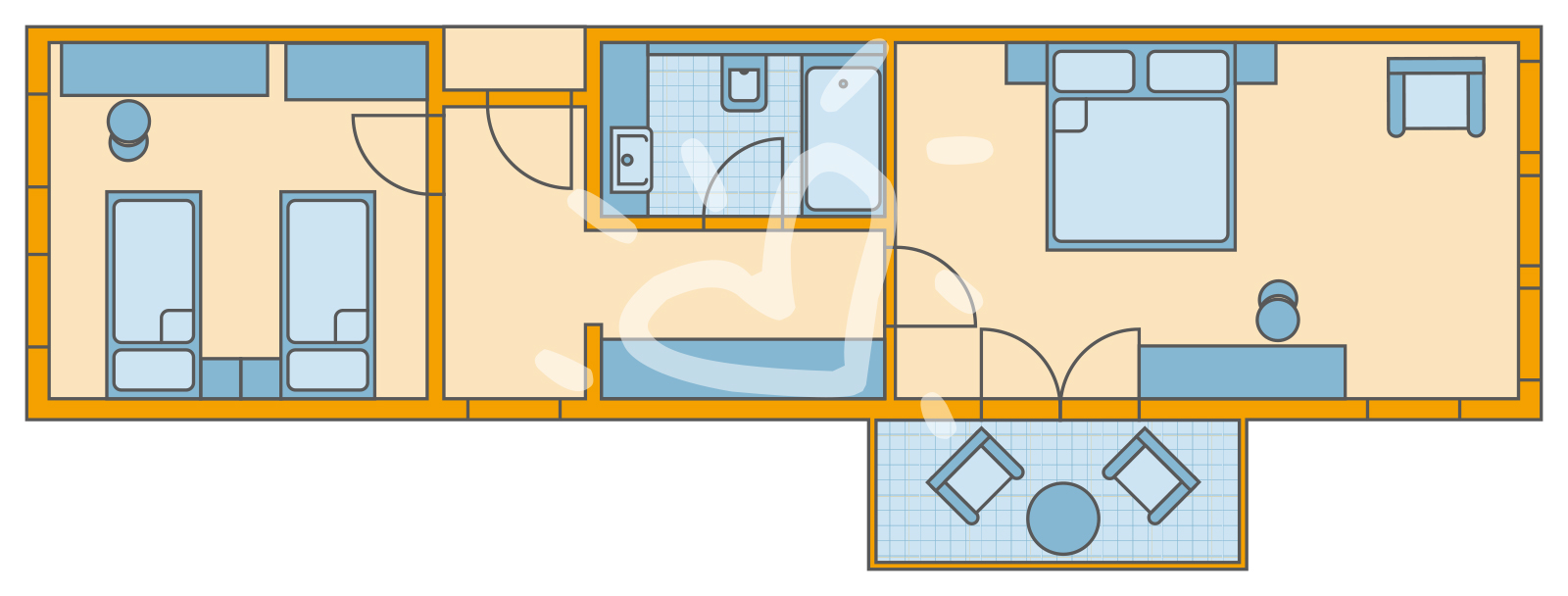 Details anzeigenSuite, Nichtraucherzimmer Gartenblick, ca. 53 m², letzte Teilrenovierung 2016, Gesamtanzahl der Räume in diesem Zimmertyp: 2, Aufteilung wie folgt: kombiniertes Wohn-/Schlafzimmer, 1 Schlafzimmer, 4 Einzelbetten (90x200cm), 1 Schlafsofa (85x200cm), Babybett: ohne Gebühr, Reservierung notwendig