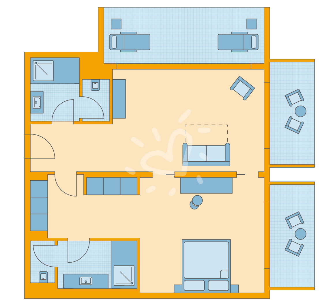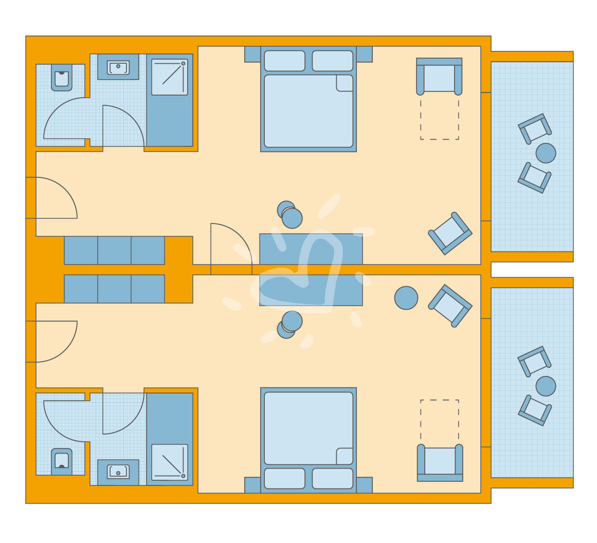 Details anzeigenNichtraucherzimmer, Meerblick, ca. 67 m², Gesamtanzahl der Räume in diesem Zimmertyp: 2, Aufteilung wie folgt: kombiniertes Wohn-/Schlafzimmer, bestehend aus 2 Zimmern, optisch getrennt ohne Tür oder durch Vorhang, 1 Schlafzimmer Mindest-/Maximalbelegung: mind. 2 Erwachsene / max. 2 Erwachsene und 2 Kinder von 2-17 Jahre oder 4 Erwachsene sowie jeweils 1 Kleinkind unter 2 Jahren